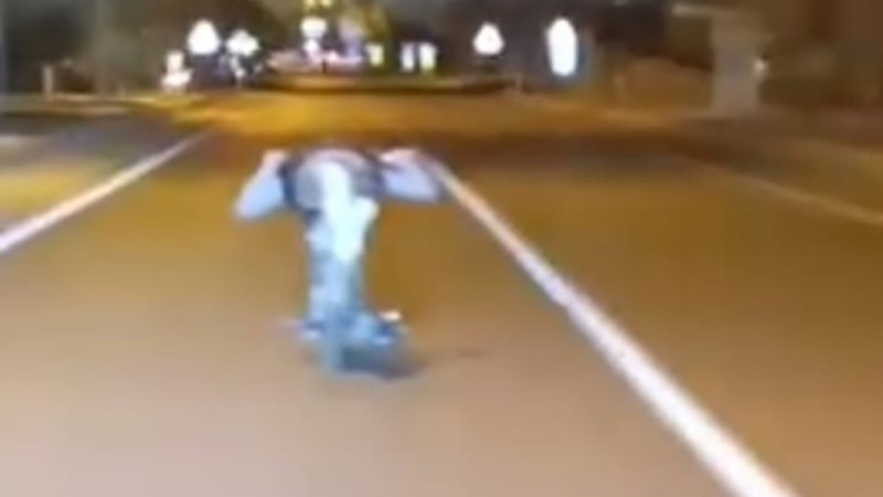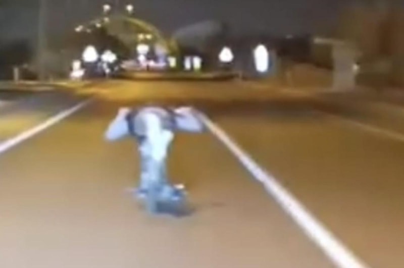 Görüntüde, gencin kullandığı ve yaklaşık 80 km hızla giden motosikletin üzerine bir anda yattığı ve kilometrelerce aracı o şekilde kullandığı görüldü.