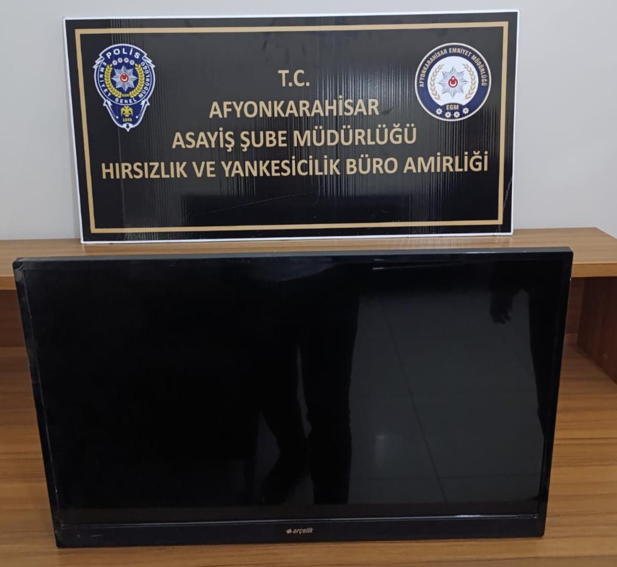Ardından polis ekipleri, M.S.'yi çaldığı televizyonla yakalayarak gözaltına aldı.