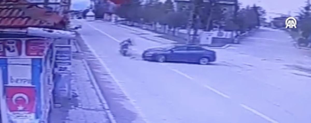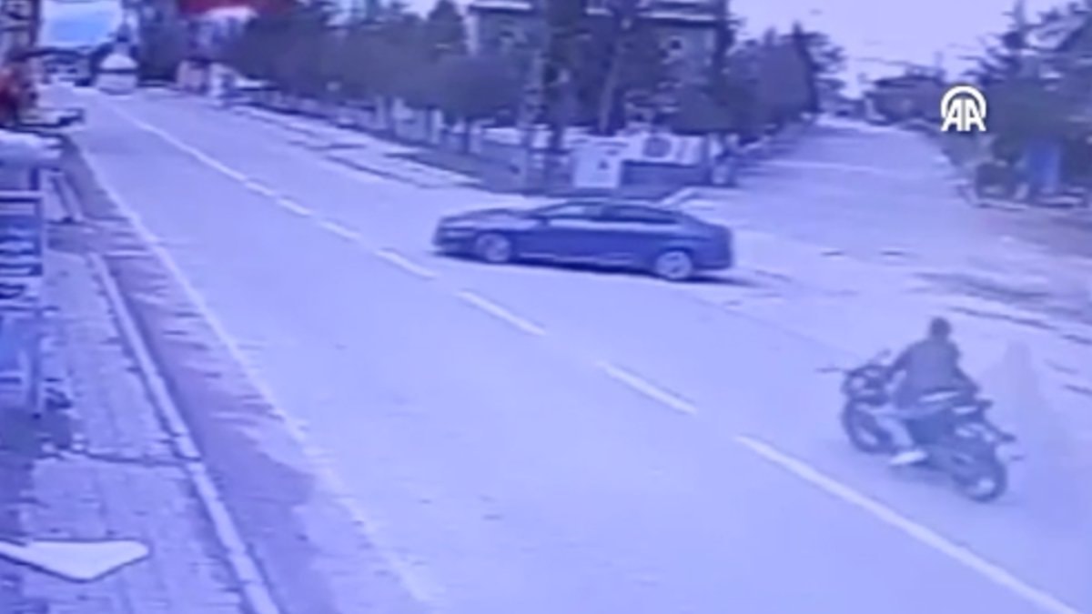 Görüntüde, otomobilin "U" dönüşü yaptığı sırada motosiklete çarpması yer alıyor.