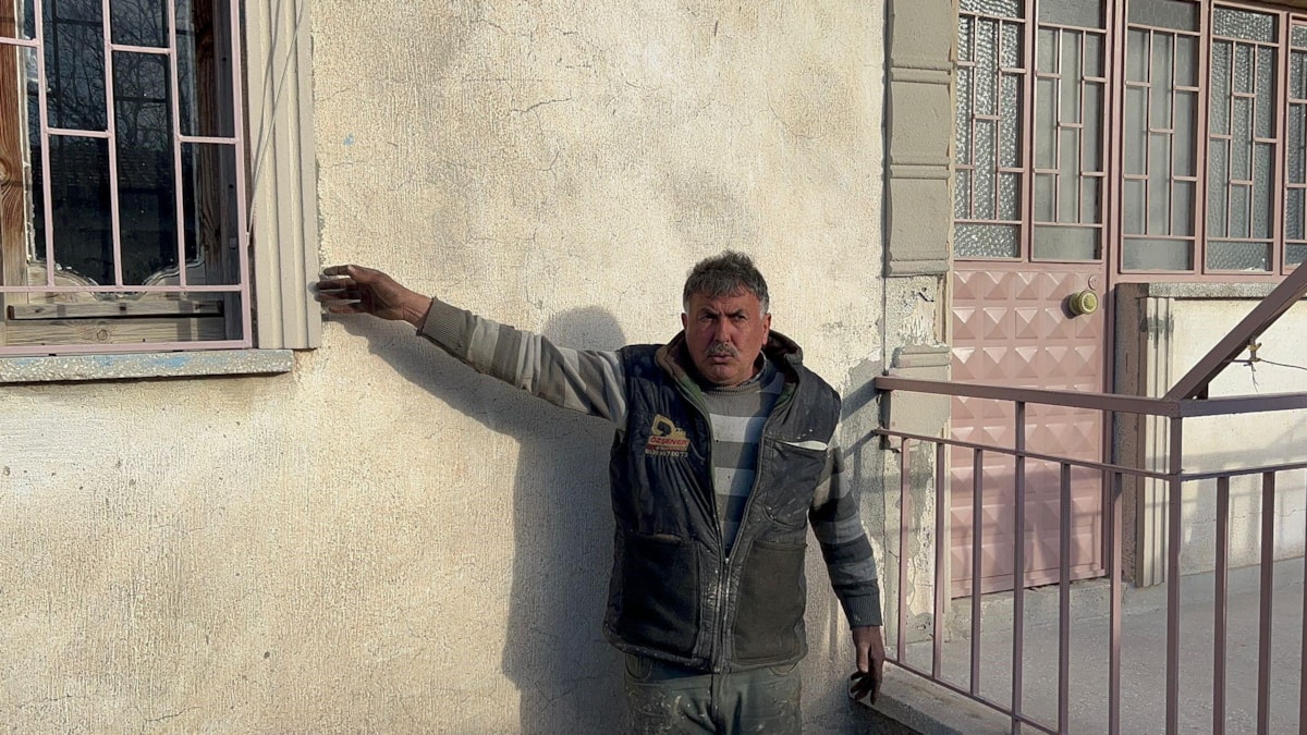 “Evim ve ahırım bölündü, ineklerim ölecek diye korkuyorum. Evim bölündü ve göçecek, içeri girmeye korkuyorum. Nerede deprem olsa benim evim böyle açılıyor. Ben yardım bekliyorum. Bizim evimiz adeta bölük bölük altında kalacağım diye korkuyorum. Evin tabanı dersen yine aynı şekilde, ben yeri dolduruyorum, yerle ev arasında 5 metre açıklık var ben ne yapacağım? Ev üstüme çökecek diye korkuyorum.”