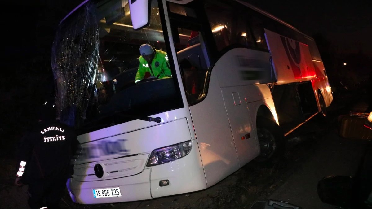 Afyonkarahisar'ın Sandıklı ilçesi yakınlarında Antalya-İstanbul seferini yapan Uğur Efe yönetimindeki otobüs, şoförün direksiyon hakimiyetini yitirmesi sonucu şarampole yan devrilerek sürüklendi.