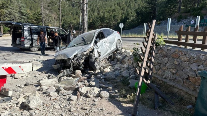 Savrulan araç, ardından yol kenarındaki bir dinlenme tesisinin bahçe duvarına çarptı.