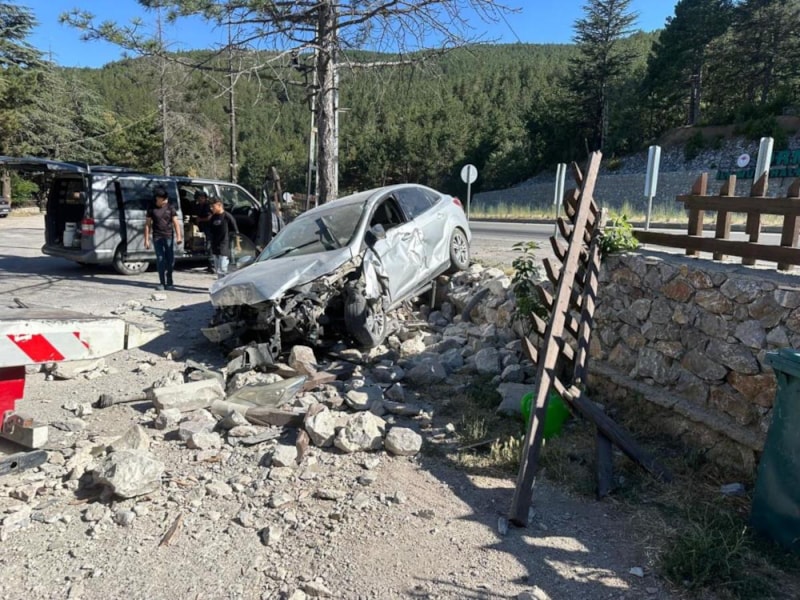 Kontrolden çıkan otomobil, yol kenarındaki dinlenme tesisinin bahçe duvarına çarparak durabildi.