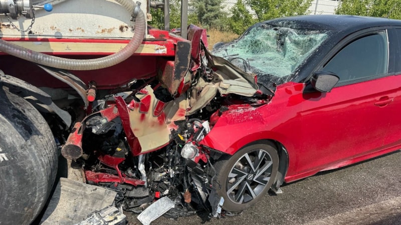 Bu esnada arkadan gelen 17 AHC 863 plakalı otomobil, tankere arkadan çarptı.