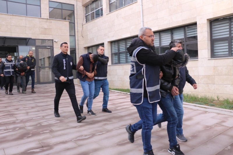 Gözaltına alınan şahıslar, emniyetteki işlemlerinin ardından geniş güvenlik önlemleri altında adliyeye sevk edildi.