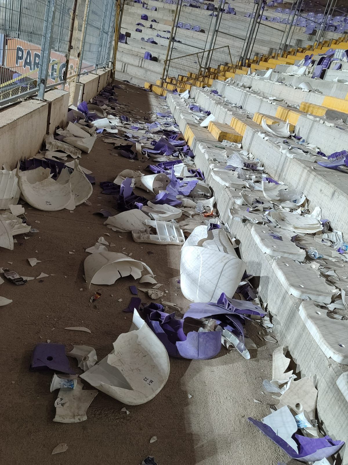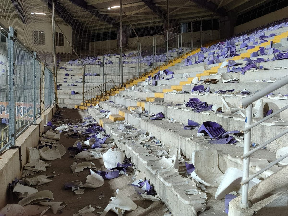 - Taraftarlar, koltukları sahaya ve rakip taraftarların bulunduğu bölüme attı, stadın tuvaletleri de zarar gördü.