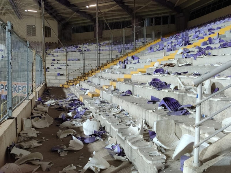 Afyonspor-Eskişehirspor maçı sonrası yaşanan tribün olaylarında 2 bine yakın koltuğa zarar verildi.