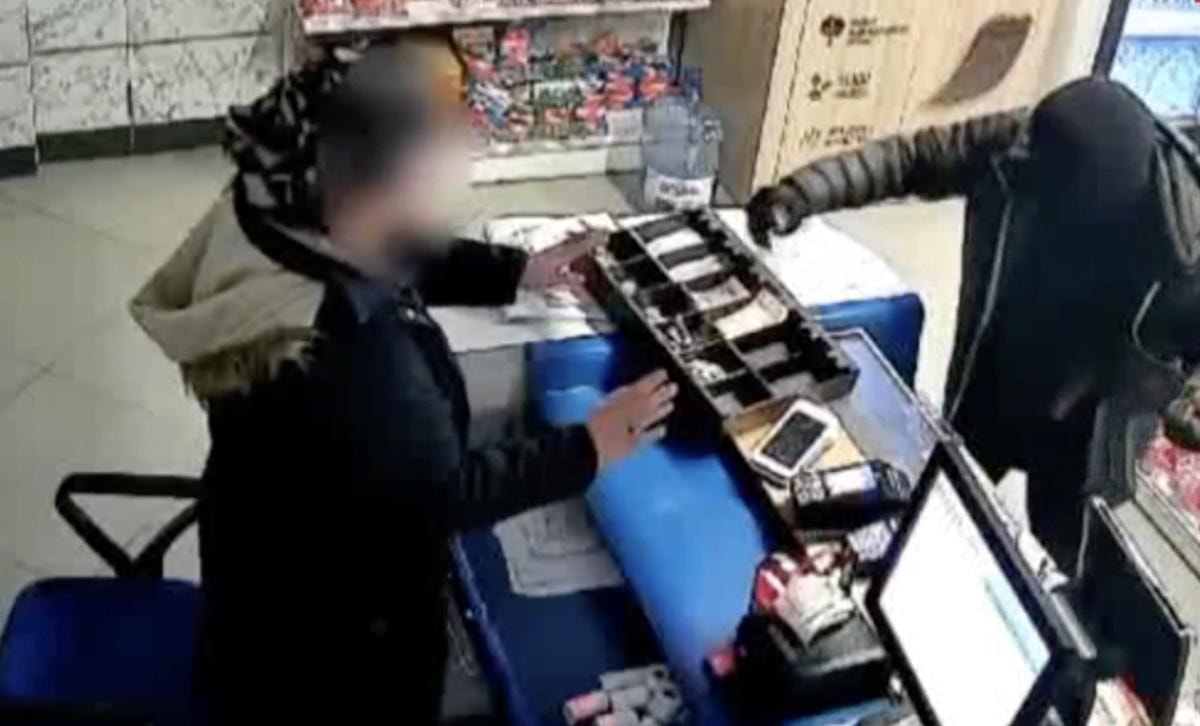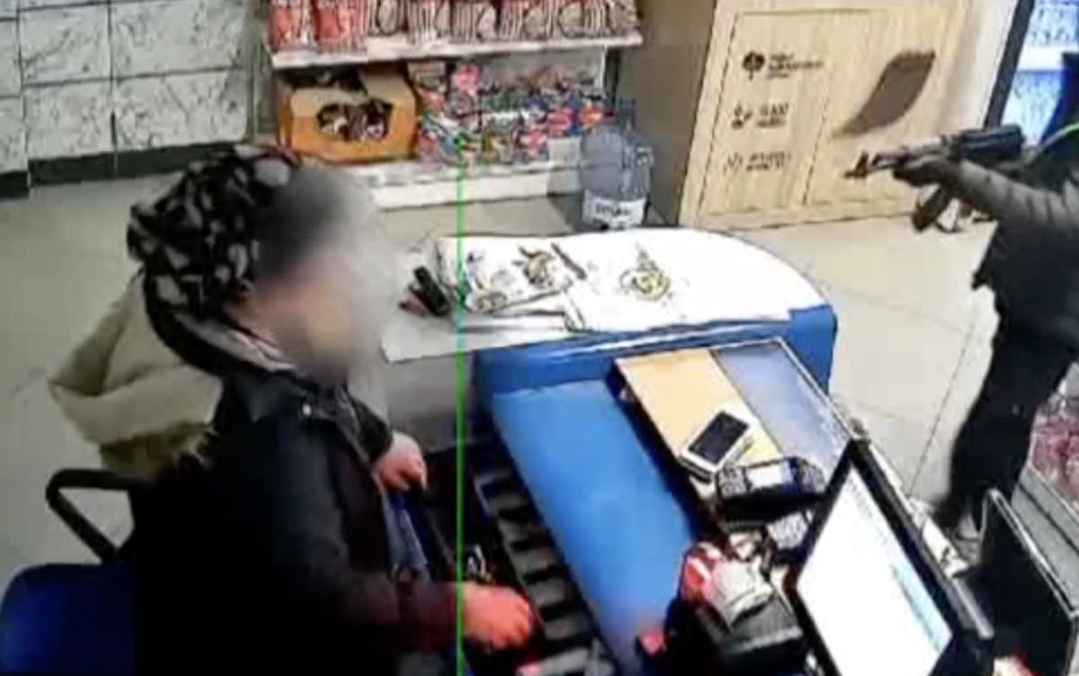 Afyonkarahisar'ın Dinar ilçesindeki akaryakıt istasyonu marketine bir şüpheli siyah mont, kar maskesi, elinde uzun namlulu silahla girdi.