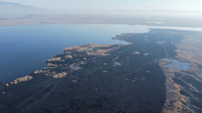 Bölgeye gelen ekipler yangına karadan müdahale ederken, gölden yükselen alevler ve duman kilometrelerce uzaklıktan görülürken yangın sabaha karşı güçlükle söndürüldü.