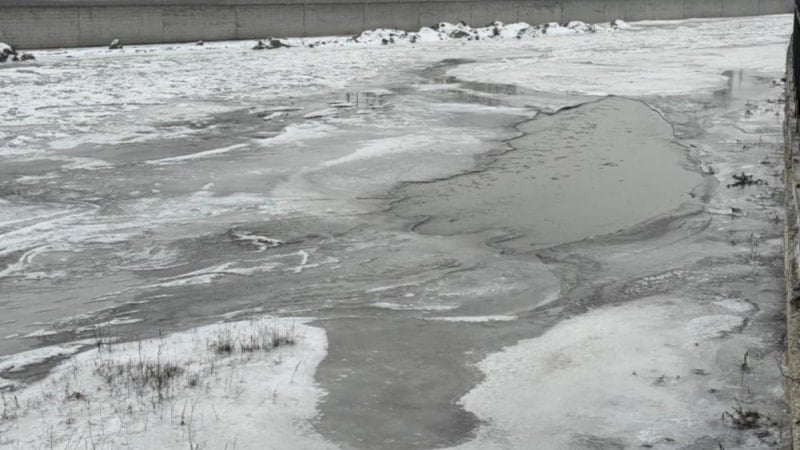 Soğuk havanın etkisiyle Murat Nehri kısmen buz tuttu.