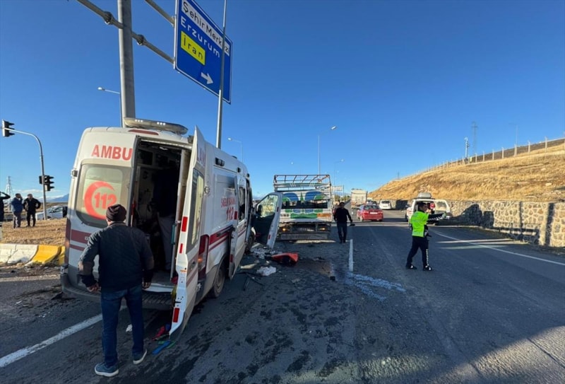 Ağrı'da Hamur kara yolu Ahmed-i Hani Havalimanı kavşağında S.A. yönetimindeki ambulans, H.A.'nın kullandığı kamyonetle çarpıştı.
