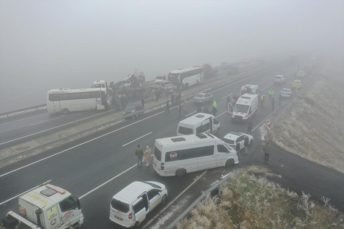 Öte yandan sis de etkili olunca kazalar kaçınılmaz oluyor. Son olarak Ağrı'da zincirleme kaza meydana geldi.