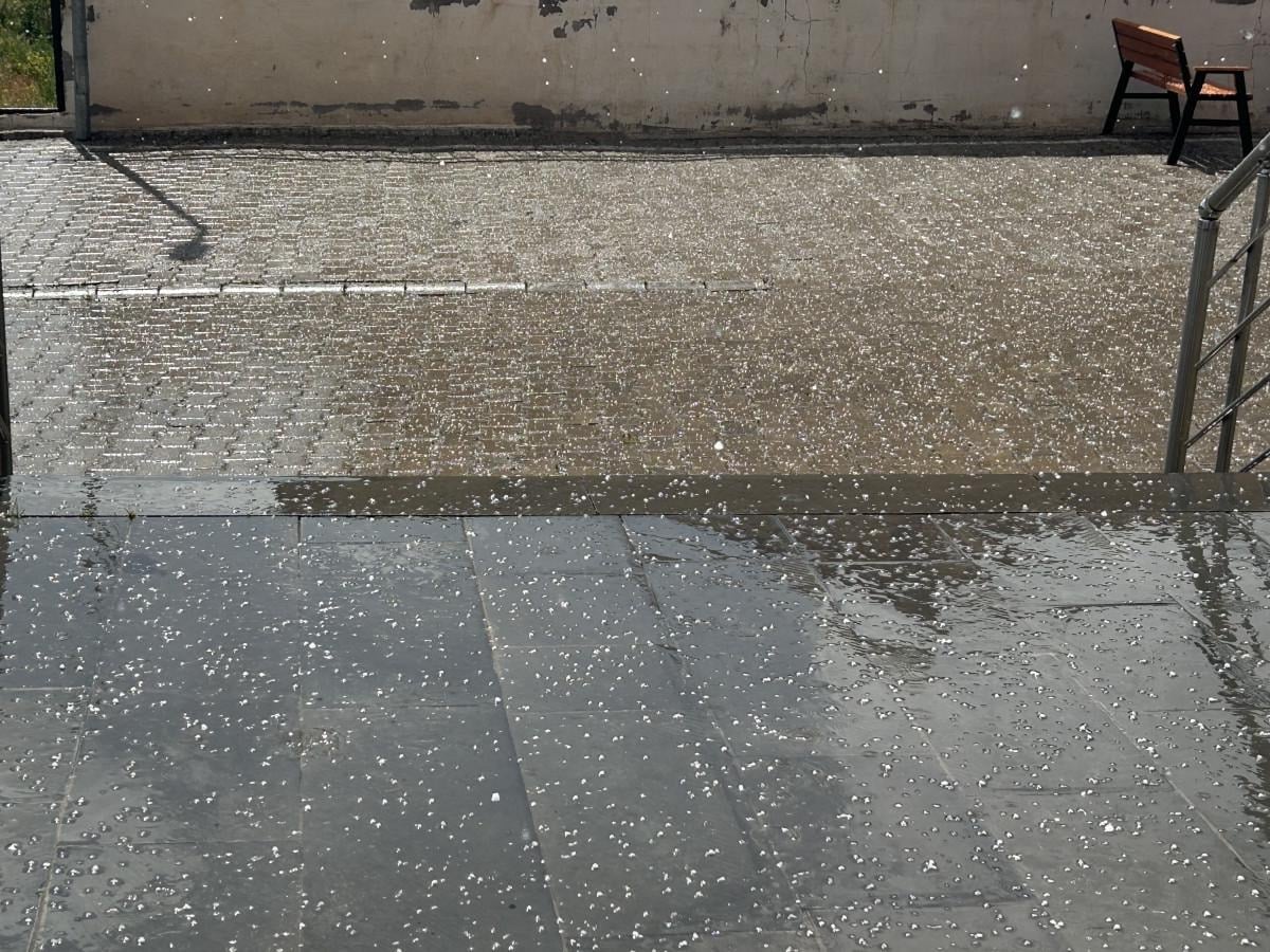 Ağrı'nın Diyadin ilçesinde öğle saatlerinde başlayan dolu yağışı, vatandaşları hazırlıksız yakaladı.