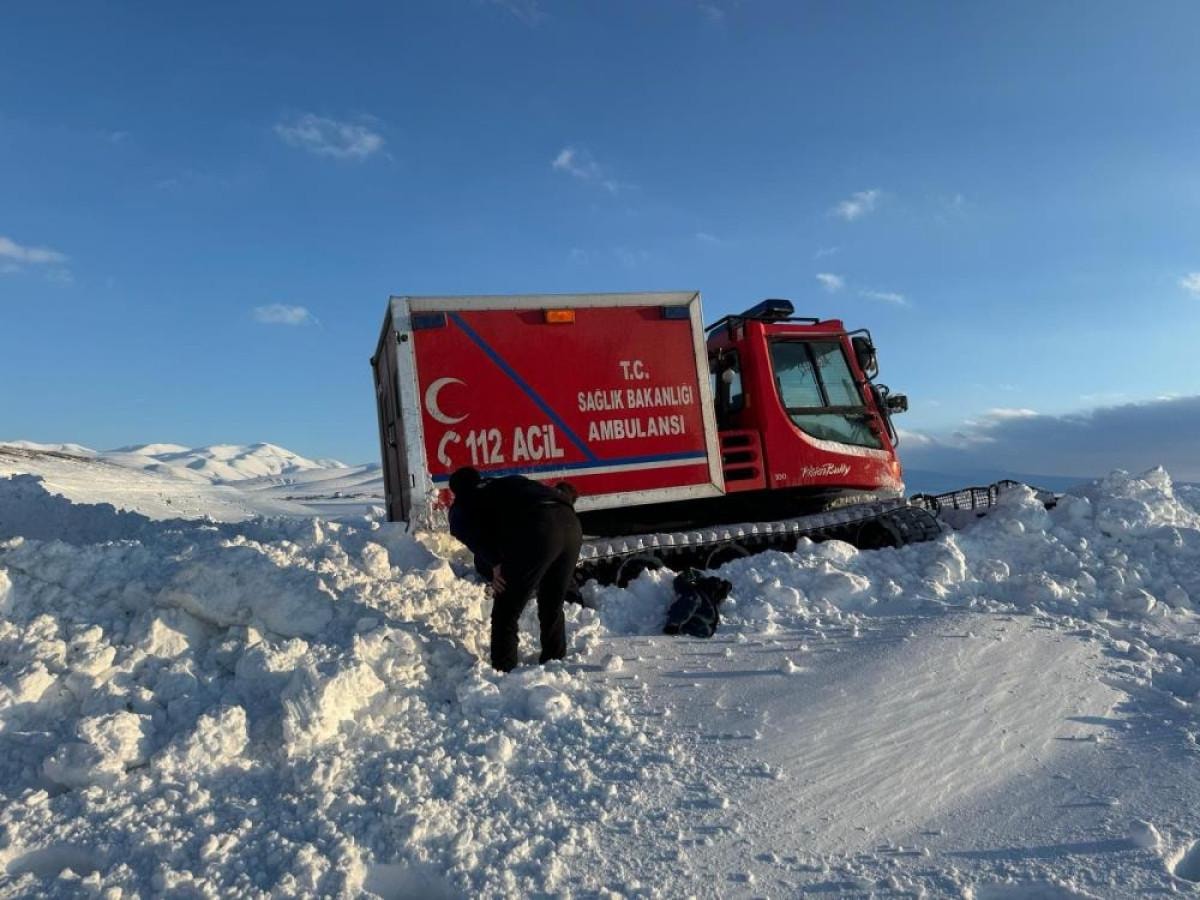 Paletli ambulans, bir metreyi bulan kar kalınlığı nedeniyle ilerleyemeyince, sağlık ekipleri küreklerle kar temizlemeye başladı. Ambulansın saplandığı yerden kurtarılmasıyla yola devam eden ekipler, 6 saatlik çalışmanın ardından mezraya ulaştı.