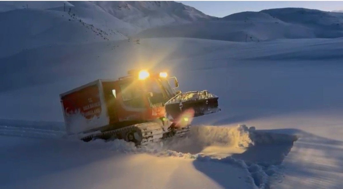 Yoğun kar yağışı ve kapalı yollar nedeniyle bölgeye standart ambulansla ulaşım mümkün olmayınca, Ağrı’dan 112 Acil Sağlık ekiplerine ait kar üstü paletli ambulans sevk edildi.