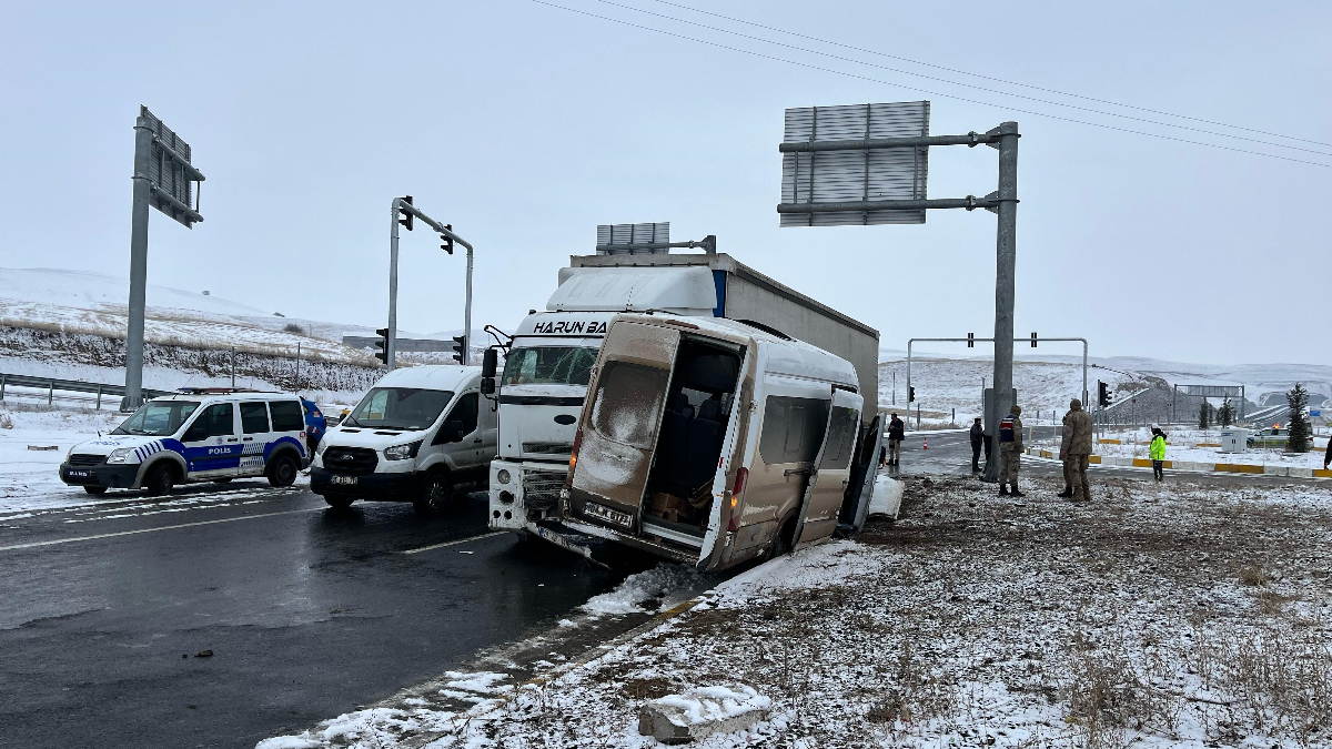 Ağrı istikametinden Patnos istikametine seyreden tır sürücüsü M.H.E., Tutak-Karayazı kavşağı geldiği esnada, otoyola çıkmaya çalışan C.B. isimli sürücünün minibüsü ile çarpıştı.