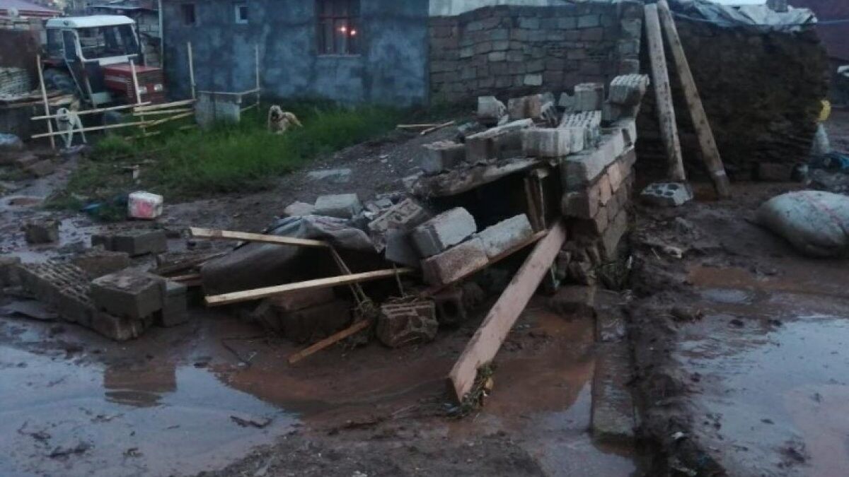 Birçok ev sular altında kalırken, bahçe duvarları sel nedeniyle yıkıldı.
