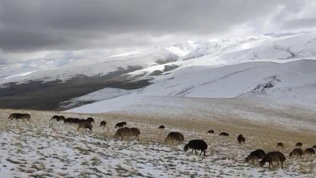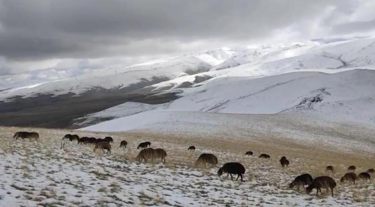 Geçen yıllara göre erken gelen kar yağışına hazırlıksız yakalanan bir çoban ise koyunlarını kar altında otlatmak zorunda kalınca ortaya renkli görüntüler çıktı.