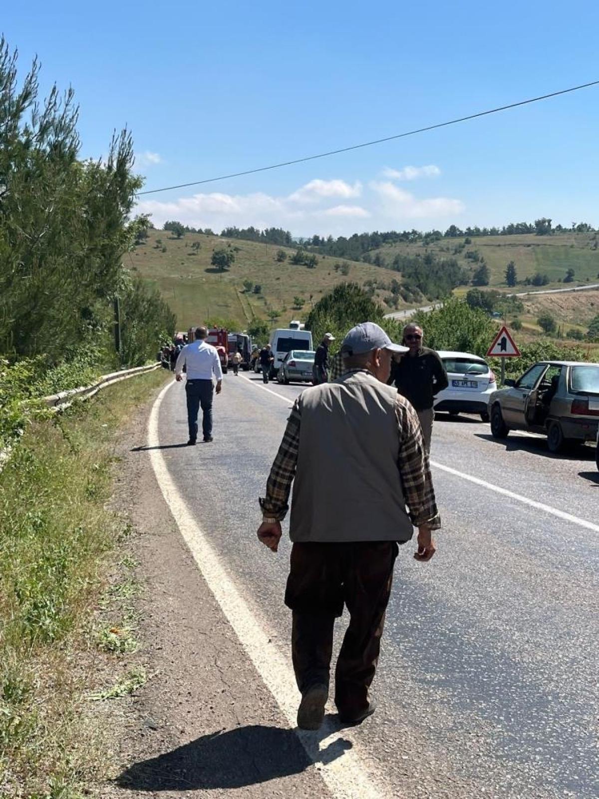 Kazada çarpmanın etkisiyle bir otomobil yanarken, diğer otomobil ise yoldan çıkarak araziye uçtu. Alev topuna dönen otomobil içerisinden çıkamayan 1 kişi feci şekilde yanarak olay yerinde can verdi.
