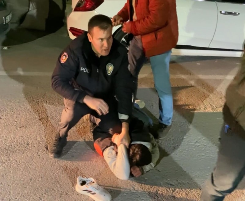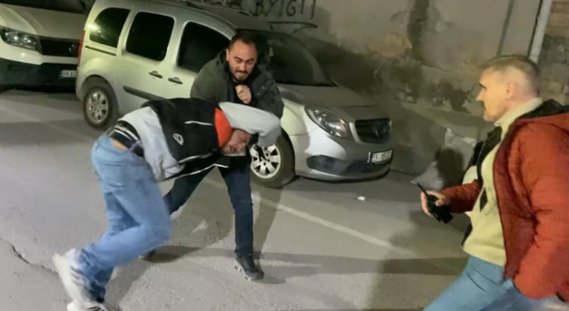 Bunun üzerine şüpheliler ve polis arasında kovalamaca yaşandı. Kameraya yansıyan kovalamacada şahıslar kısa sürede yakalanırken, bu kez de polis ekiplerine direndi.