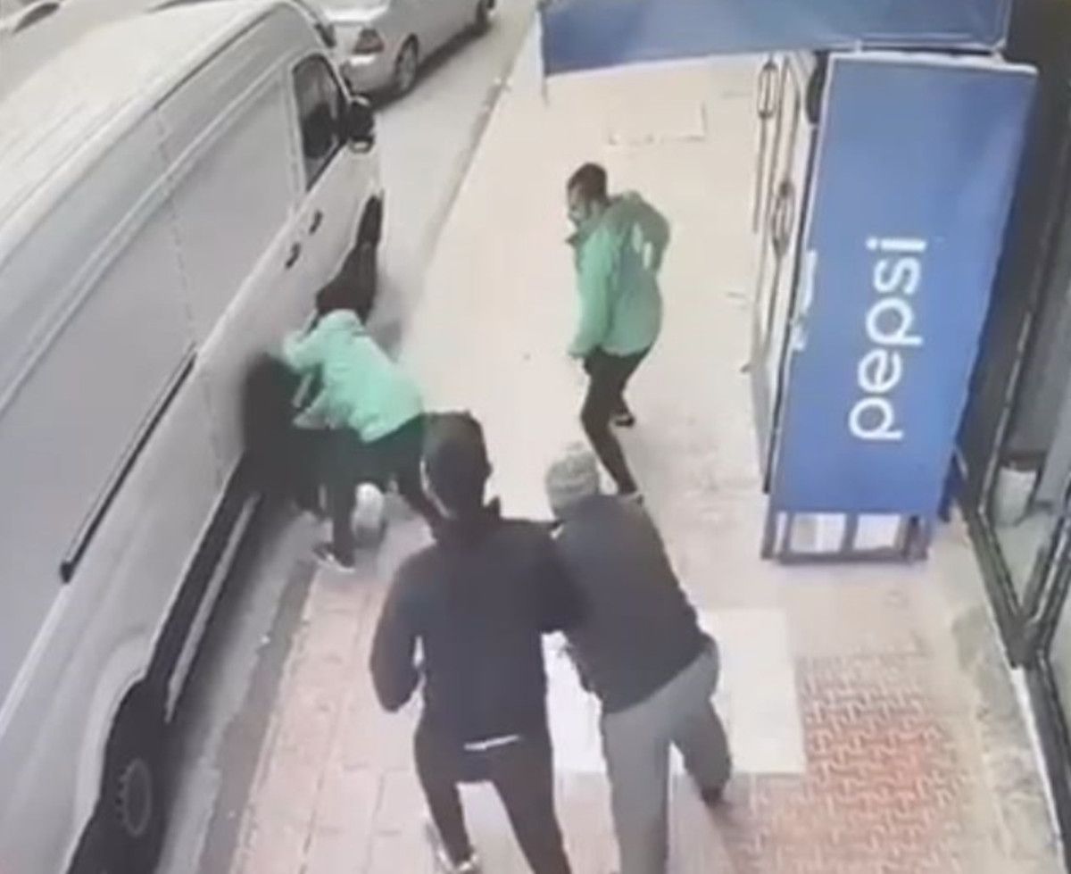 Çevredeki vatandaşların müdahalesiyle olay yatıştırılmaya çalışılırken kavga anı bir iş yerinin güvenlik kamerasına anbean yansıdı.