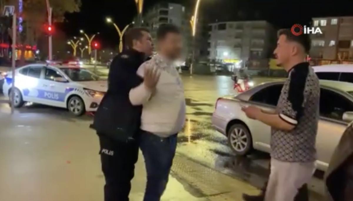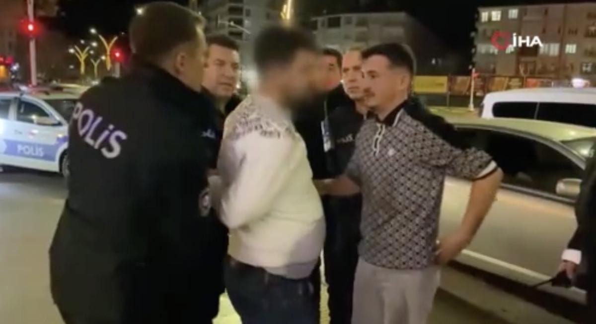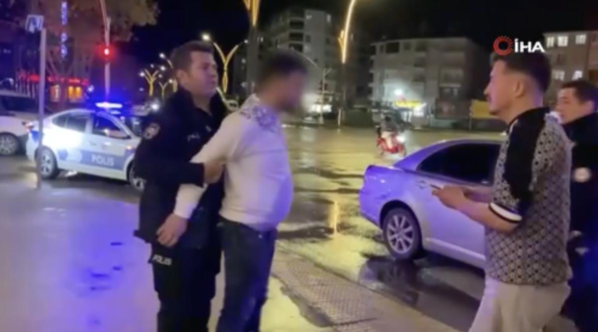 Ardından polis ekiplerinin elindeki telefonunu çekip alan alkollü şahıs, polis memurunu, “Niye çekeyim ya abi, sen dünkü çocuk musun?” diye azarladı.
