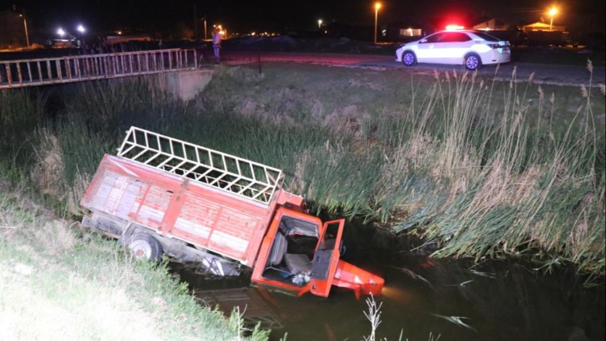Aksaray'da, Yavuz Sultan Selim Mahallesi 5131 Sokak'ta, Hürriyet Mahallesi istikametinden Yavuz Sultan Selim Mahallesi istikametine seyreden Hamdi B. (62) idaresindeki kamyonet sürücüsünün direksiyon hakimiyetini kaybetmesi sonucu sulama kanalına uçtu.