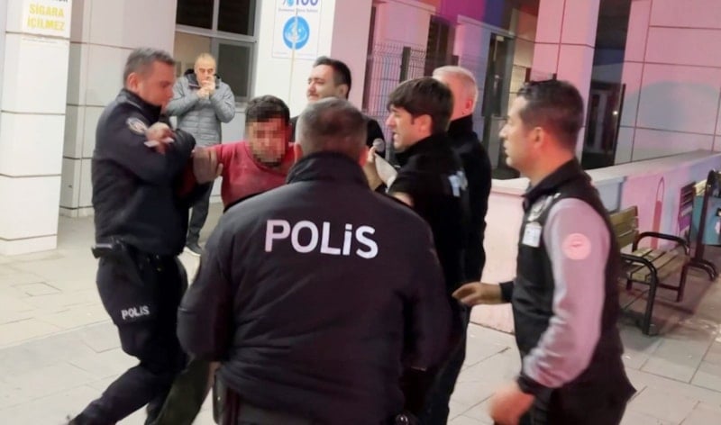 Burada şahıslardan biri ambulansın kapısının açılmasıyla birlikte gazetecilerin görüntü aldığını fark ederek yattığı sedyeden atlayıp gazetecilere saldırdı.
