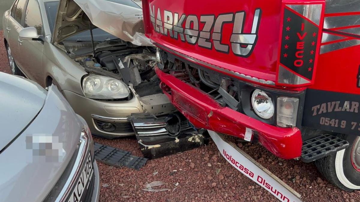 Çarptığı otomobili de sürükleyerek kontrolden çıkan kamyonet, park halindeki 4 otomobile çarparak durabildi.