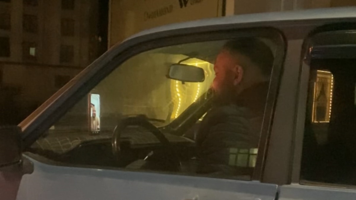 Kırmızı ışıkta beklerken kendisini gören diğer araç sürücüleri ve yolcular hayretler içerisinde kalırken, sürücünün bu dikkat dağıtıcı tehlikeli sürüşü cep telefonu kamerasıyla görüntülendi.