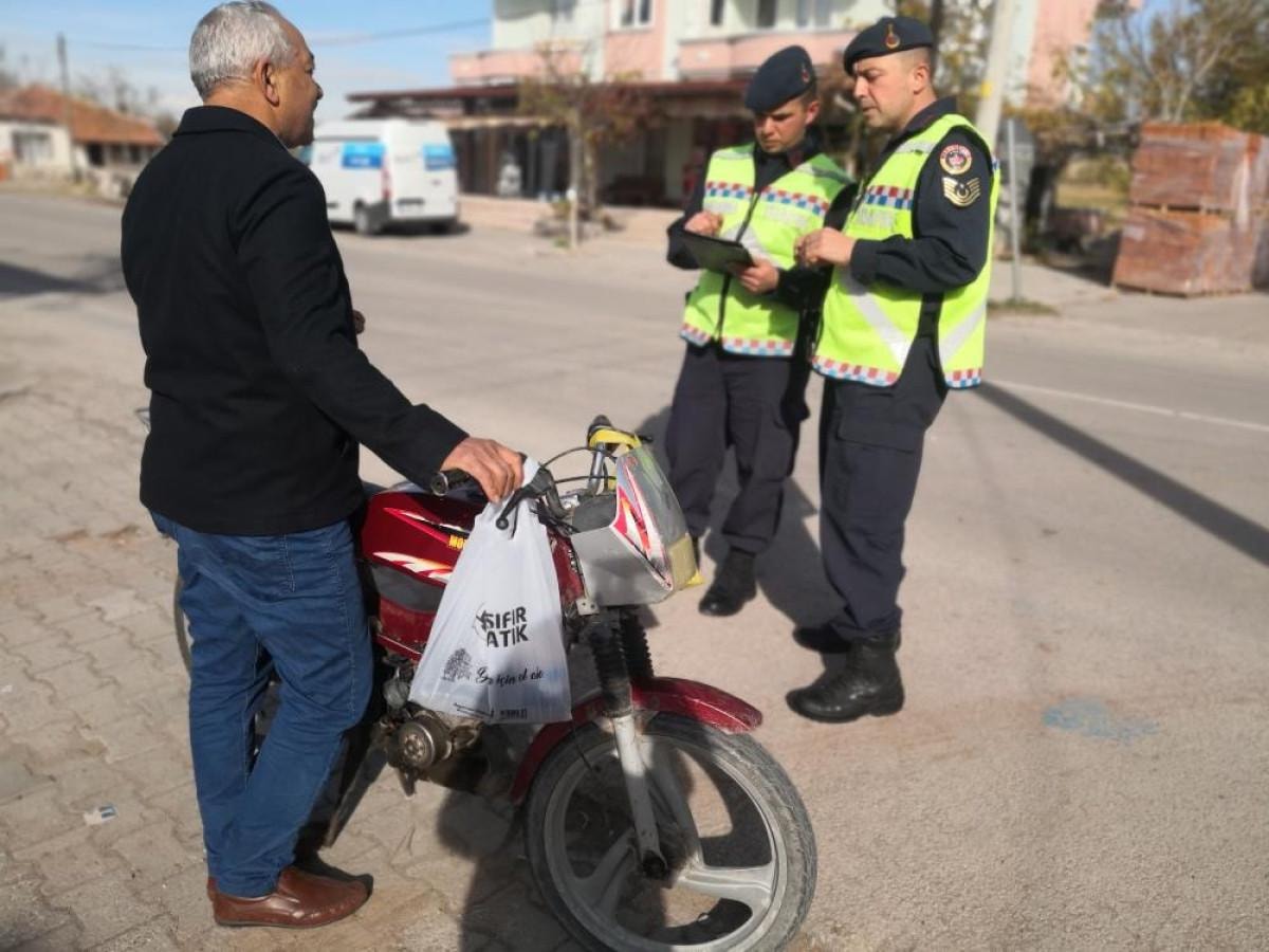 Sağlık beldesinde yapılan uygulamada A.A. (59) idaresindeki motosikleti durduran trafik jandarması ekipleri sürücüyü ehliyet ve ruhsat kontrolünden geçirerek motosiklet üzerinde de incelemeler yaptı.