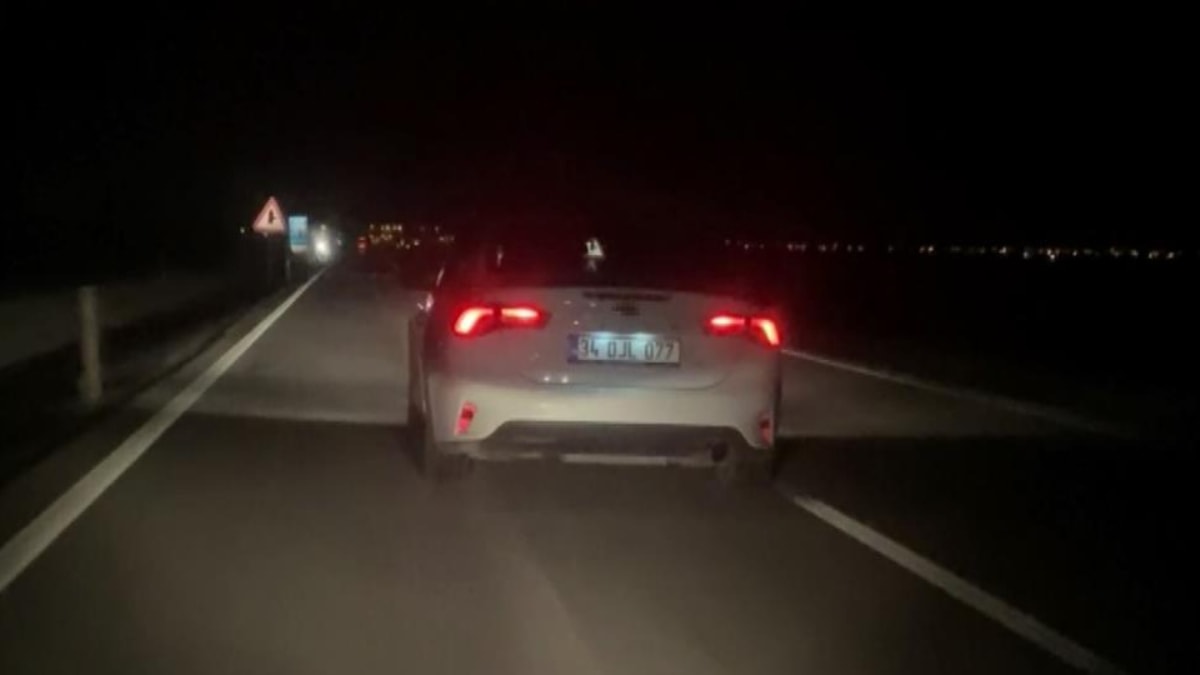 Sol şeritten seyreden sürücülerin önüne geçip şeridi kapatan, sürücülerin sağ şeride geçmesi üzerine de sağ şeride geçerek adeta alay edercesine yol vermeyen maganda sürücü sinyallerini de sağ ve solu artarda yakarak tehlikeli sürüşünü sürdürdü.