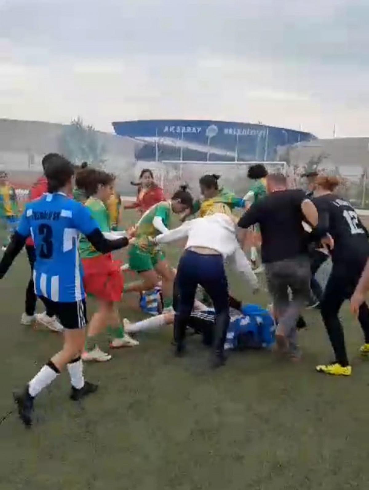 Kadın futbolcular birbirine girdi