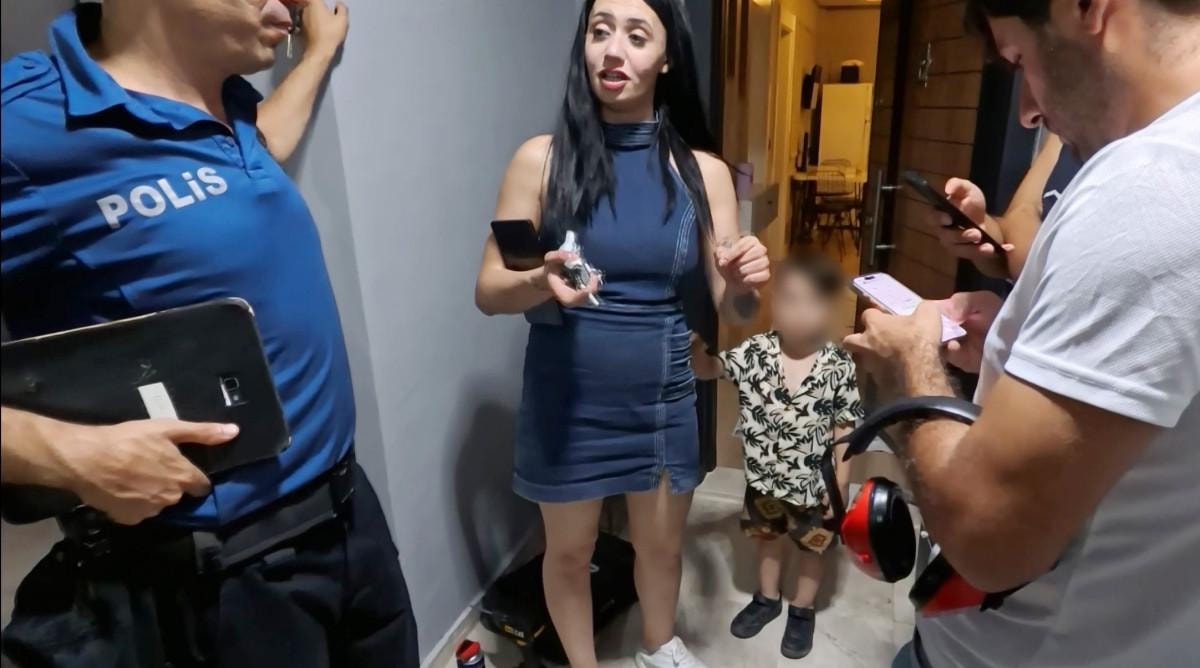 Çocuğuyla trafikte tehlike oluşturduğu ihbarı üzerine gelen polis ekipleri, kadını sakinleştirmeye çalıştı. Eve girmek istediğini söyleyen kadın, polise bağırarak tepki gösterdi. Polis, mağduriyeti gidermek için çilingir çağırdı. Kapı açıldığında ise kadın bu kez içeri girmeyi reddetti.