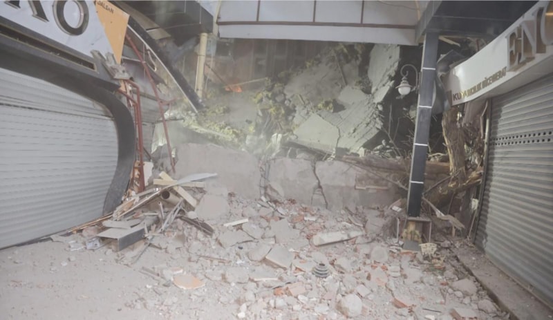 Dükkanların üzerine düşen moloz parçaları yıkım ekiplerince temizlenirken, oluşan hasarın Aksaray Belediyesi tarafından karşılanması bekleniyor.