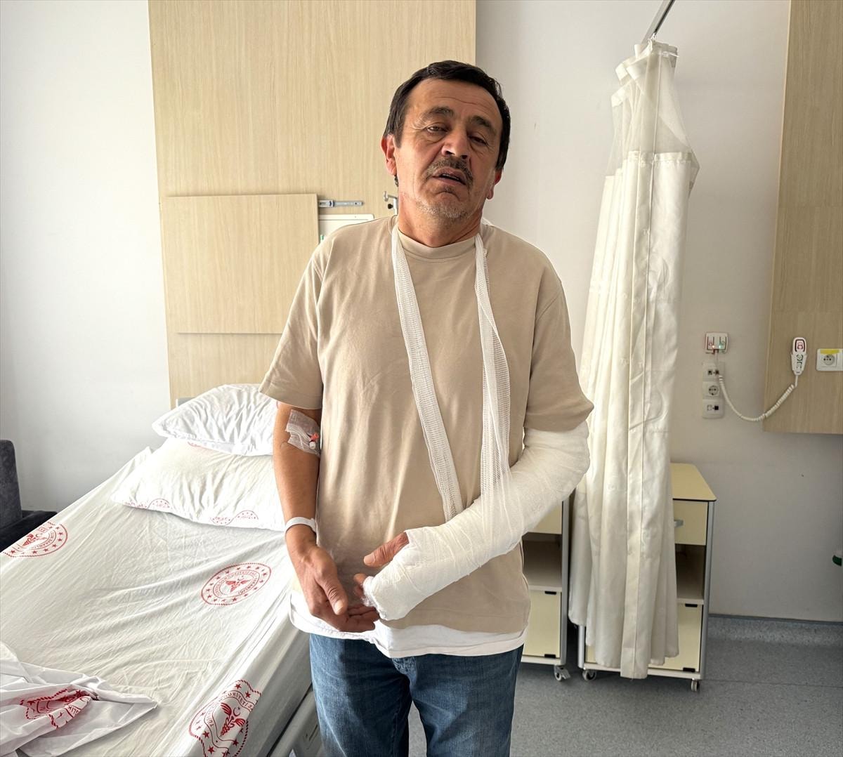 Arabanın arkasından bir anda bir kişi çıktı, göremedim. Eli de arkasındaydı ama öyle sopa veya herhangi bir şey olacağını beklemiyordum. 'Hayırdır' demeye kalmadan sopayla bana vurmaya çalıştı. İlk sopa darbesi koluma, ikincisi de ayağıma geldi. Sopayı tuttum ve sarıldım. Diğer öğretmen arkadaşlar yanımıza geldi ve bizi ayırdılar. Ben zaten şeker hastasıyım, olayın etkisiyle bir hoş oldum, hemen ambulans geldi ve hastaneye getirdiler. Bu insan bizim okuldan bir öğrencinin velisi değil. Daha önce konuştuğumuz ve merhabalaştığımız bir insan. Bir dedikodudan dolayı aramız bozulmuştu. Yani biz daha 4 gün önce öğretmen arkadaşımız için eylem yaptık. 'Öğretmenlerimize şiddete hayır' diye tüm alanlarda haykırdık. Daha üzerinden bir hafta geçmeden şiddeti kendi üzerimizde gördük. 31 yıllık öğretmenim hiç başıma böyle bir olay gelmedi.