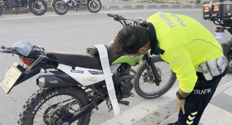 Aksaray merkez Taşpazar Mahallesi'nde devriye görevindeki polis ekipleri plakası bezle kapatılan motosikletin sürücüsüne dur ihtarında bulundu.