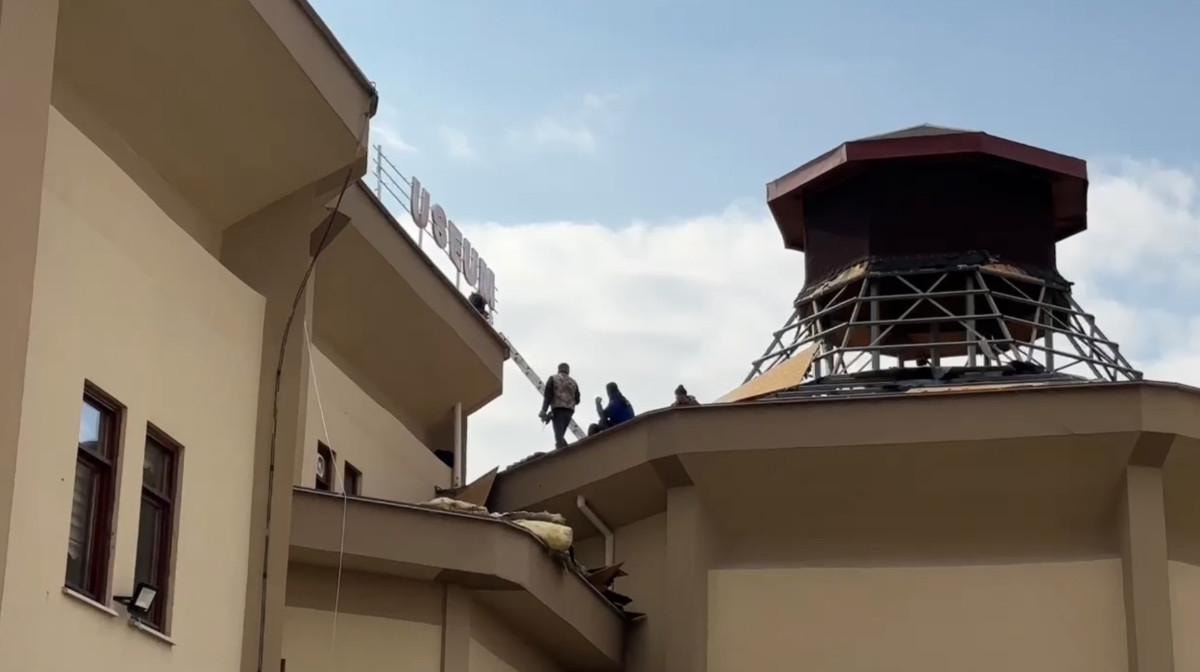 Müze çatısında tadilat çalışması yapan M.Ö. ve V.C., inşaat malzemelerini portatif yük asansörüne yükledikleri sırada malzemelerle birlikte yukarıya çıkarken asansör bilinmeyen bir nedenden devrildi.