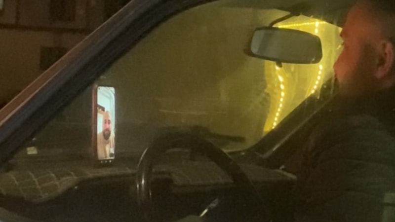 Aksaray'da eski hastane istikametine seyreden otomobil sürücüsü, aracın göğüs ile cam arasına sıkıştırdığı telefonuyla arkadaşıyla görüntülü görüşmeye başladı.