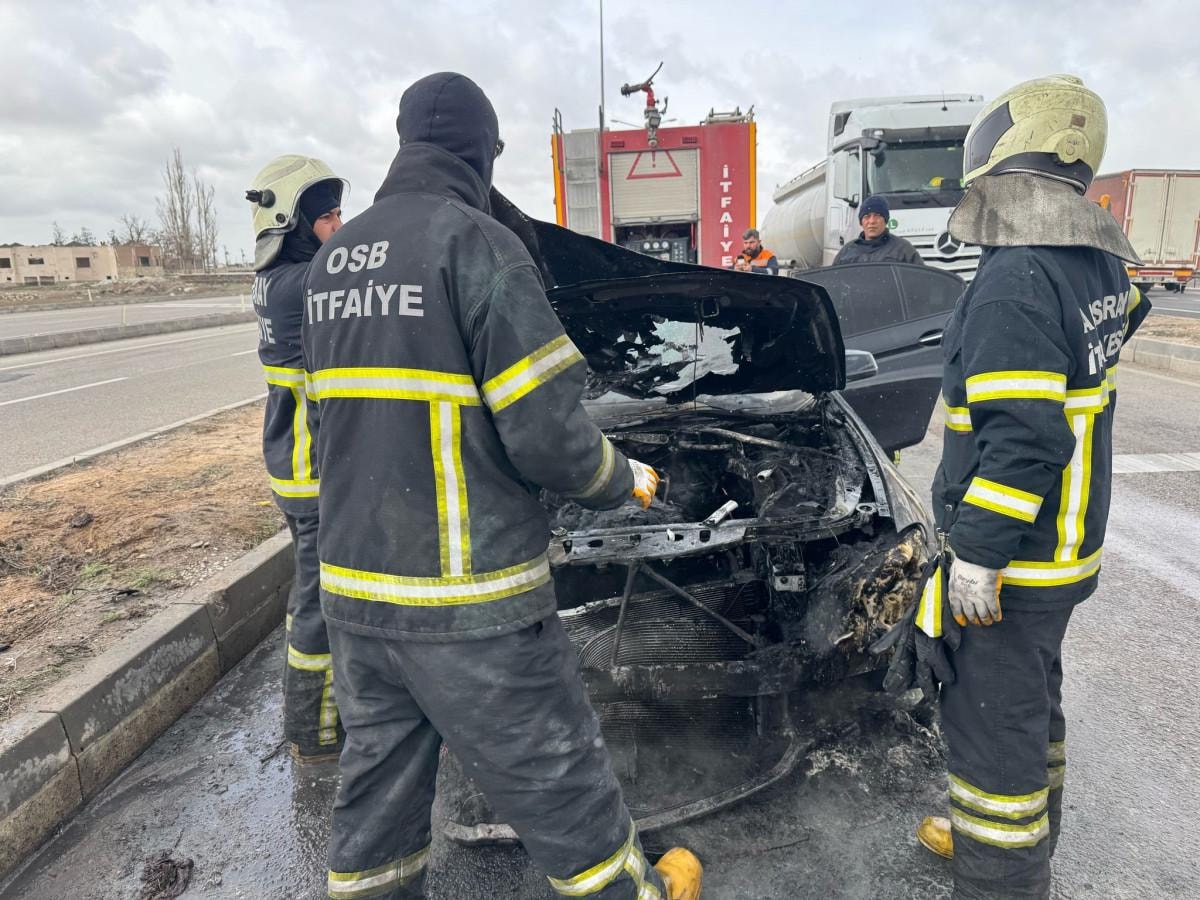 Aksaray - Adana kara yolu Yeni Sanayi Sitesi girişinde seyir halindeki araçta yangın çıktı.