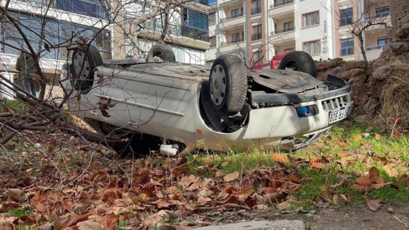 Çerdiğin Mahallesi 1067 Sokak'tan Hacı Hasanlı Mahallesi istikametine seyreden M.U. idaresindeki otomobil, gaz pedalının takılması sonucu kontrolden çıkarak takla attı.