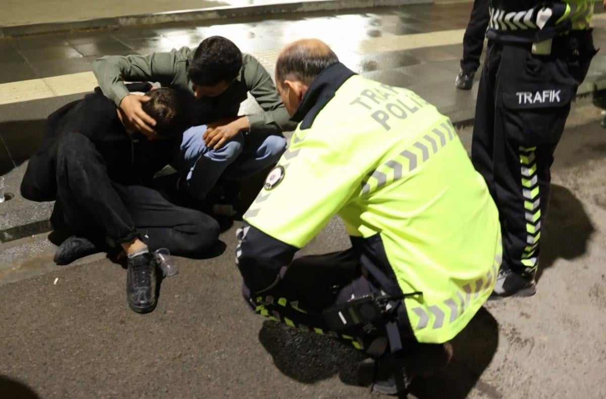 Polis aracına kafasını vurarak kendine de zarar veren M.D., olay yerinde bulunan arkadaşları ve vatandaşlar tarafından sakinleştirilmeye çalışıldı.
