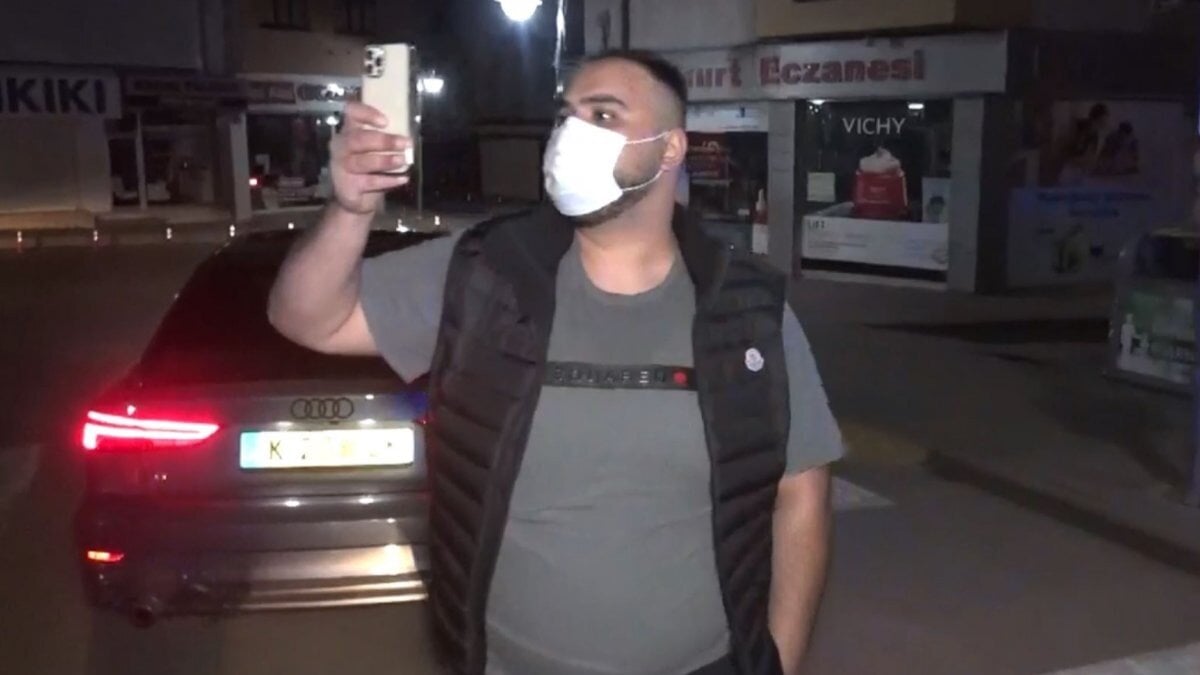 Kesilen cezaların ardından sinirlenen sürücü araçtan inerek eline aldığı cep telefonuyla görevini yapan polis memurlarını ve basın mensuplarını görüntülemek istedi.