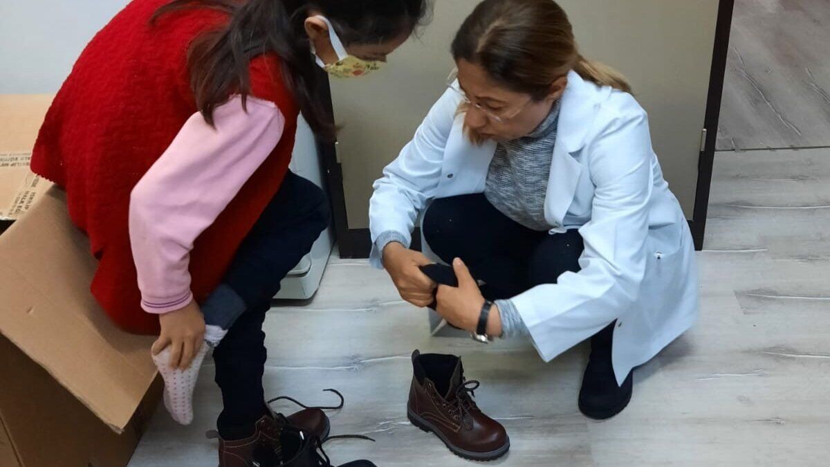 Yeni bot verilenlerden Büşra Keser ayakkabısını değiştirdiği sırada sınıf öğretmeni Hafize Tüzün, öğrencisinin çorabının da ıslak olduğunu fark etti.