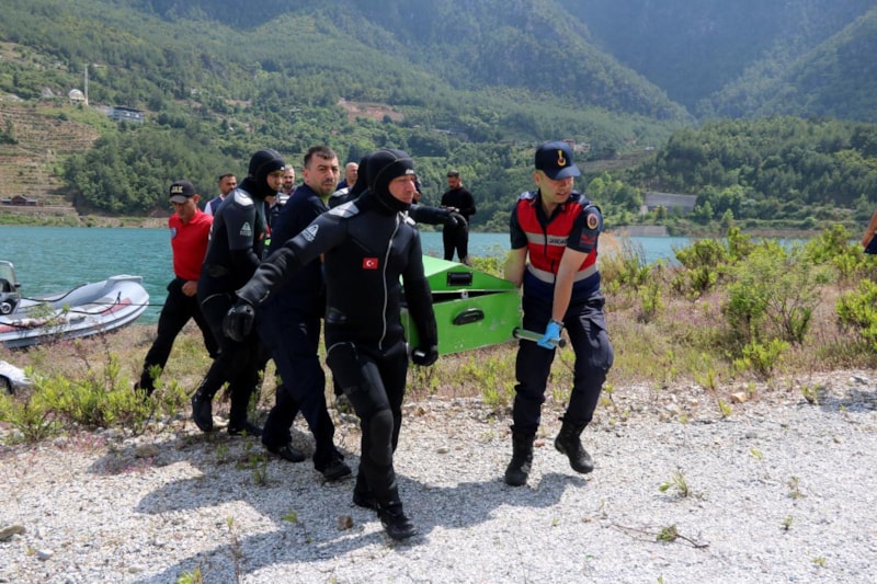 Gün ağarınca Antalya Jandarma Sualtı Arama Kurtarma dalgıçları tarafından Dim Barajı'nda çalışmalara başlandı.