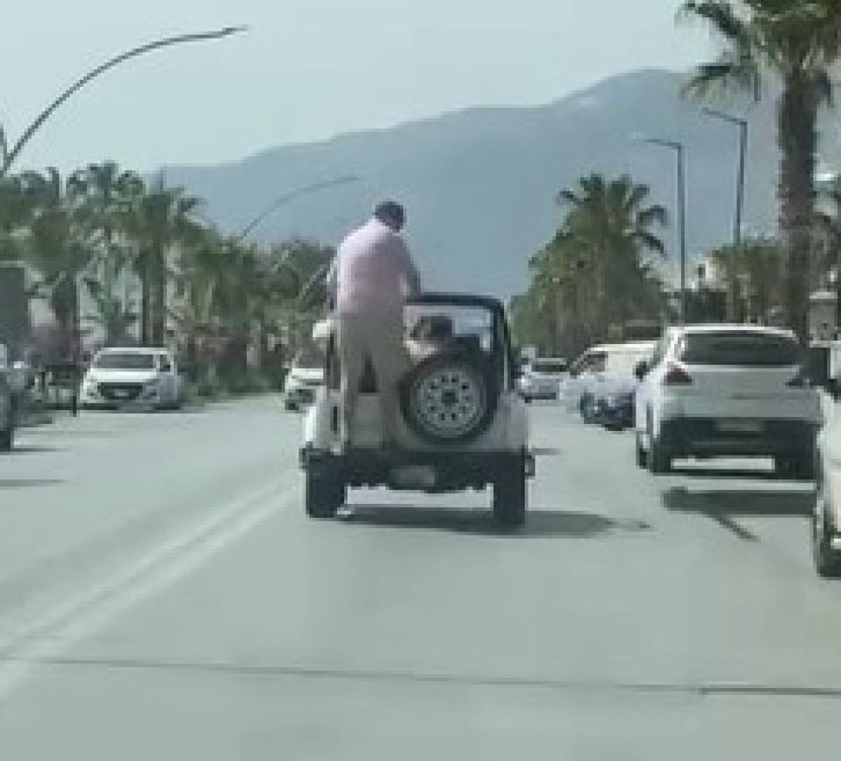 Olayda, üstü açık cipte yolculuk yapan yabancı uyruklu bir turist güvenlik kurallarını hiçe saydı.