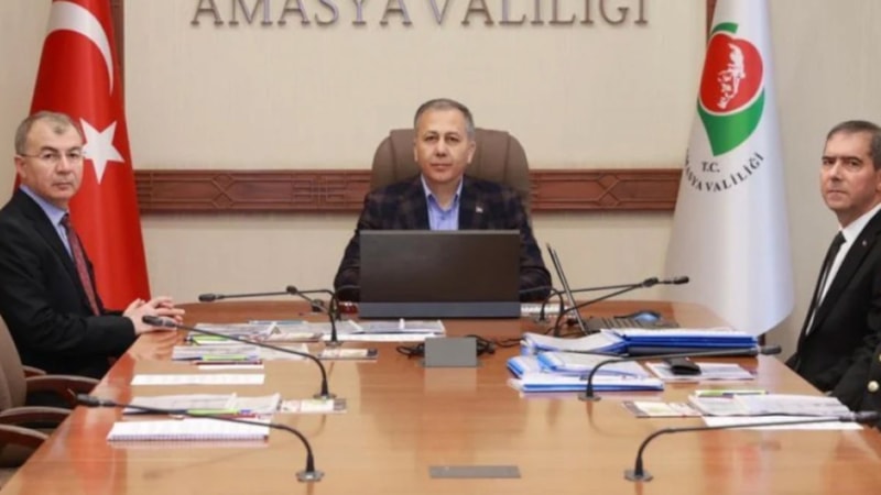 Amasya Valiliği önünde Vali Yılmaz Doruk, AK Parti Amasya milletvekilleri Haluk İpek ve Hasan Çilez ile protokol üyeleri tarafından karşılanan Bakan Yerlikaya, burada seçim güvenliği toplantısı gerçekleştirdi.