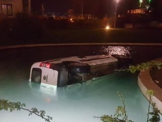 Aracını park etmek için site içerisindeki otoparka giren V.D., direksiyon hakimiyetini kaybetti. Kontrolden çıkan araç, içerisinde bulunan sürücü ve 2 yolcu ile havuza uçtu.