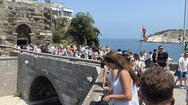 Turistler, Amasra Kalesi ile Çekiciler Çarşısı'nda yoğunluk nedeniyle yürümekte zorlandı.
