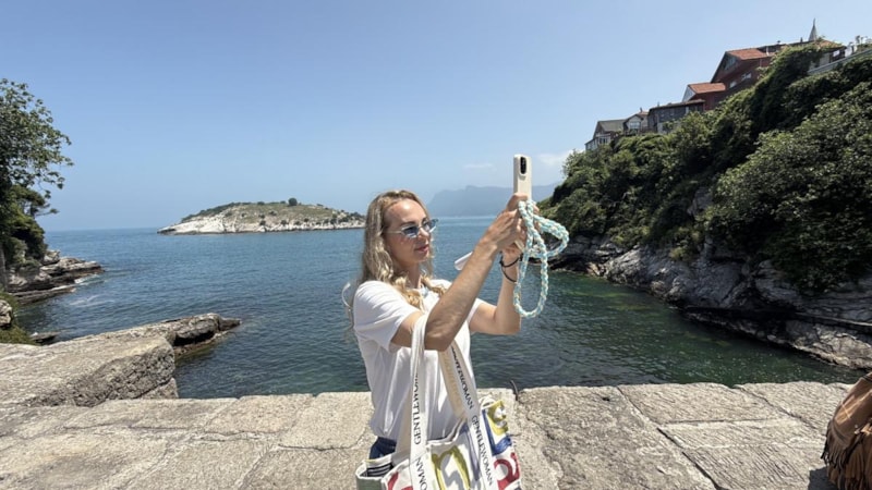 Hava sıcaklığının 26, deniz suyu sıcaklığının 19 derece olduğu ilçede, güzel havayı fırsat bilen tatilciler, plajdaki kumsalda gezip fotoğraf çektirdi.